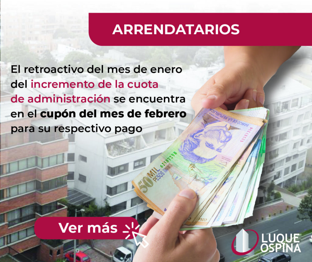 En Luque Ospina, le informamos a nuestros arrendatarios que, según el clausulado del contrato de arrendamiento y para la presente vigencia,